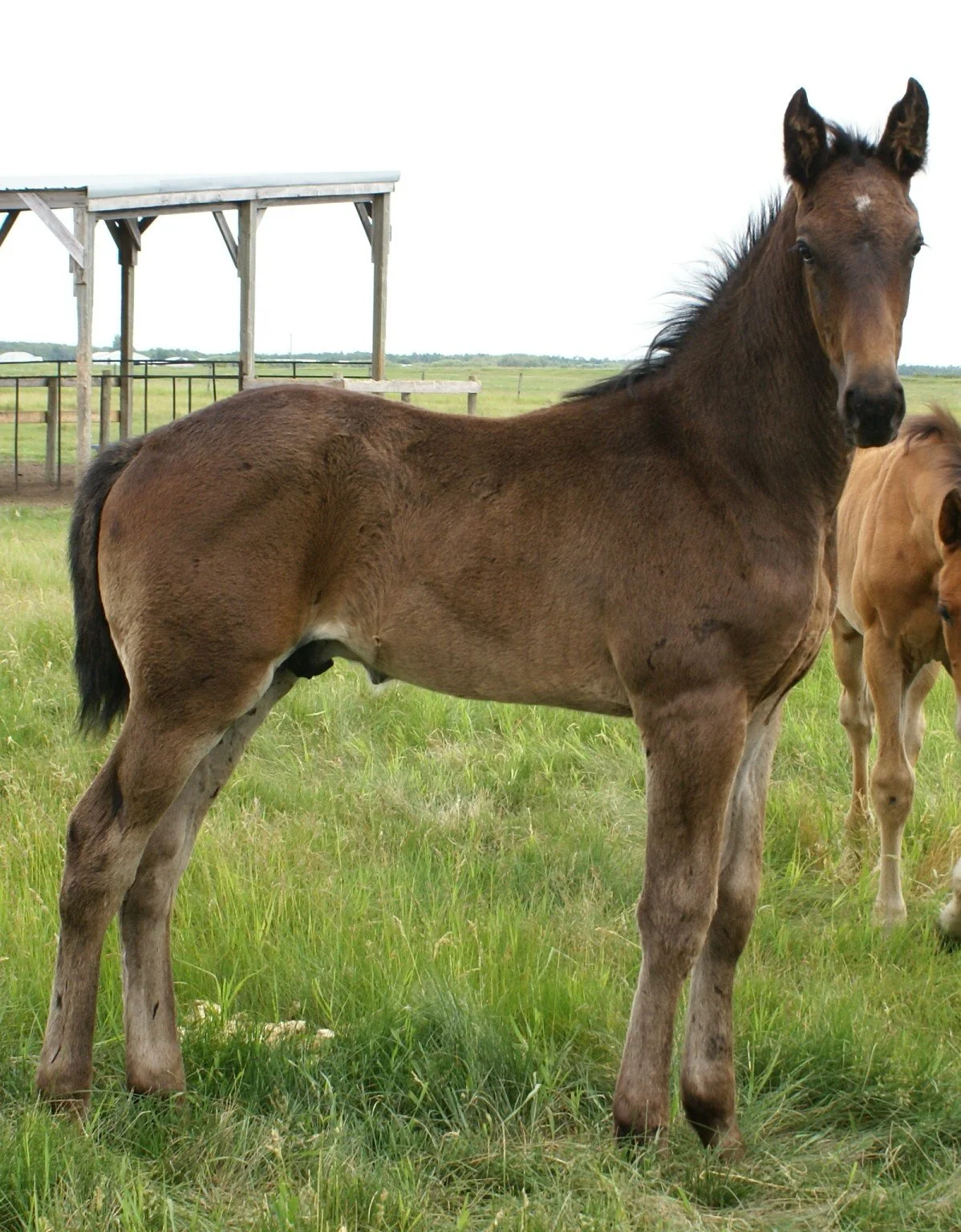 ORBIT AQHA Colt, born April 22, 2025. Solid dark bay. Long legged with a huge hip!